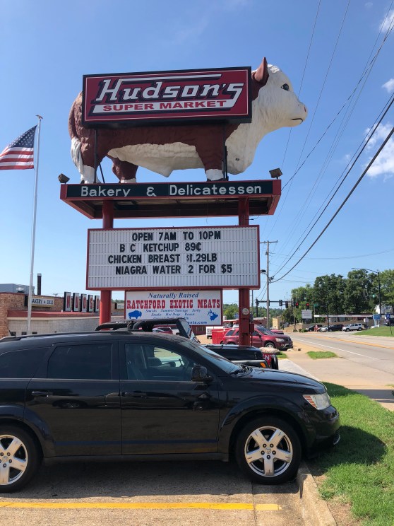 So after taking Yogi for a walk and having some coffee, we drove to “the right Harris” and had a delicious breakfast at the Town House Café. It was in an old, worn downtown area that was obviously struggling. We walked around a bit after breakfast and then drove to an old grocery store that featured a giant, dump truck sized bull, high in the air above its sign. I have a lot of questions about this, but I guess I can just boil it down to, why? After grabbing a few things in the store, we went into an old pharmacy next door and looked around. When we came out we both realized that the old downtown, with its faded signs, abandoned buildings and the lack of something new was actually depressing us. Not that this town seemed much different than many others that we’d driven through on this trip, but we both decided to get the hell out of there and head back into the woods and the safe newness of the RV!